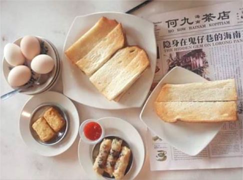 椰浆饭,猪肠粉,咖椰吐司,咖喱鸡,海南鸡饭,叻沙,翡翠烟鸡卷,芝士豆腐,羊角面包,鸡丝河粉,太空包, 雪油加央太空包,炸鸡椰浆饭,海南鸡腿饭,何九海南茶,虾米猪肠粉