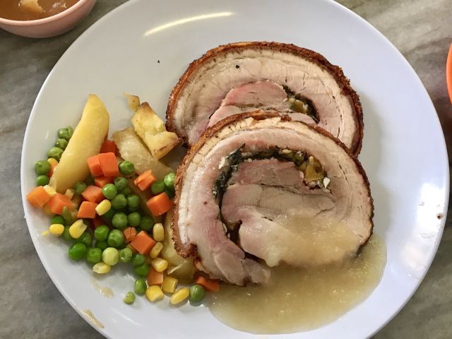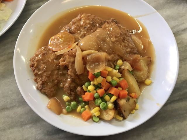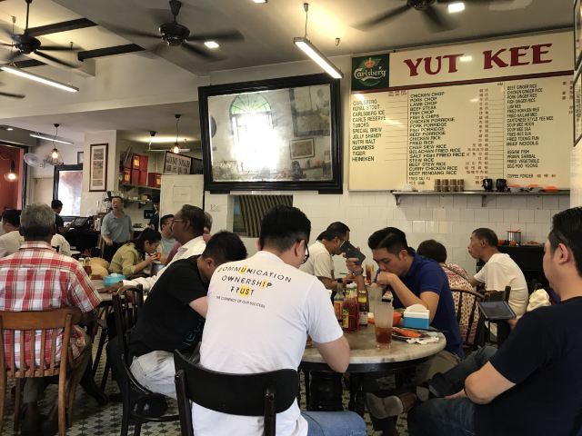 Yut Kee Restaurant我们終於來 鎰記(Yut Kee)吃美味的烤豬肉卷!到达时,刚好看到新鲜出炉的烤猪肉卷从厨房里拿出来。烤猪肉卷只在周五,周六和周日供应。 烤猪肉卷搭配苹果酱,配上炸马铃薯片和蔬菜。猪肉很嫩,皮好脆。太赞了! 我们还点了海南猪扒和猪肉面包。 年老的李老板走过来,教我们用 Lea&Perrins Worcestershire 酱汁吃猪肉面包。 加入酱汁后,猪肉面包的味道有提升。猪肉面包的馅料是肉末和洋葱。 镒记的奶油蛋糕和咖椰瑞士卷也很畅销。我们为乐龄的乡亲们带回了这两种蛋糕。他们吃得好开心。 我们去吉隆坡已好多次,很遗憾没有早点到这里来。 这家著名的海南餐厅自1928年以来,一直供应传统的海南美食。 我们再去吉隆坡时,一定会回去镒记品尝其他的海南菜肴。