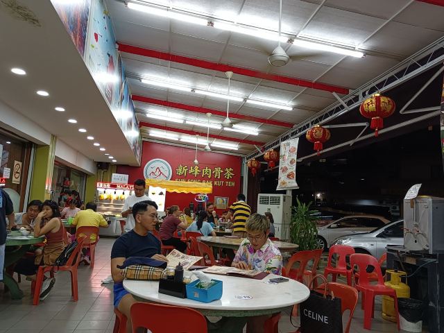 新峰肉骨茶是吉隆坡人气超高肉骨茶店。每天开张的时候就开始有很多人来排队,这里的门牌并不是很显眼,看起来就是大排档的样子,环境也很一般,但是仔细看墙上就能看到曾经光顾的艺人照片,杨紫琼、谢霆锋、陈小春等都在此列,价格也不算很贵。 新峰肉骨茶是以猪骨、猪肉混合川穹、甘草、当归等药材长时间熬制而成,味道鲜甜浓郁,分为以菜为主和以肉为主的两大类,前者较为清爽,后者更为厚重。肉骨茶的料包也有多种可以选择,多数人还是更喜欢传统肉骨茶,药味比较浓郁。 这里除了肉骨茶之外,还售卖新鲜水果、马来传统菜肴和饮品,罗汉果冬瓜水和竹蔗茅根水颇受欢迎。另外这里的肉骨茶汤料可以外带,当伴手礼送给朋友也是不错的选择。