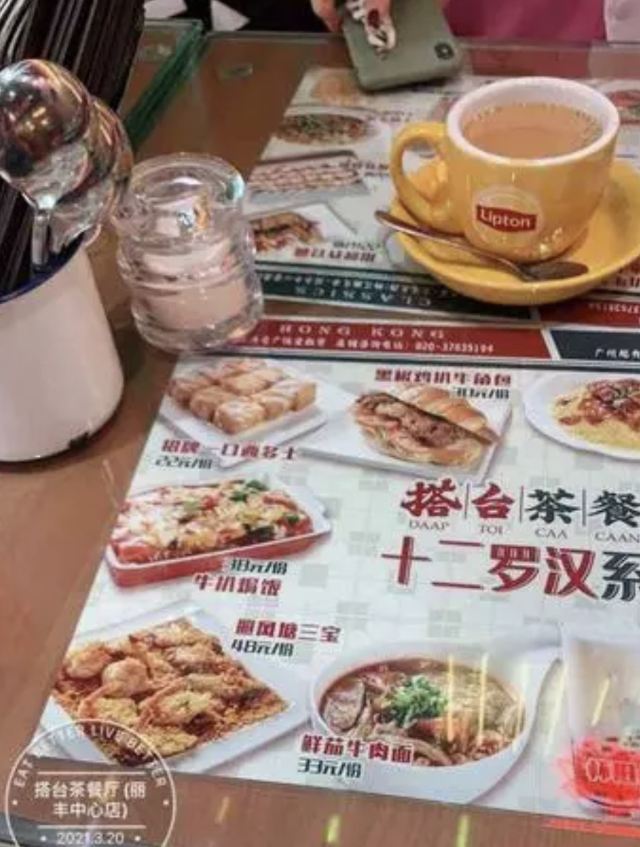 丽丰茶餐厅位于茨厂街和中央市场之间的拐角处,餐厅的招牌很醒目。餐厅的墙面和地面由马赛克铺成,和广东、香港的60年老字号茶餐厅差不多,一看就是有年头的店。店里的菜单都是贴在墙上的,餐厅售卖各种广式面食、米粉,也有马来西亚特色的鸡饭等。