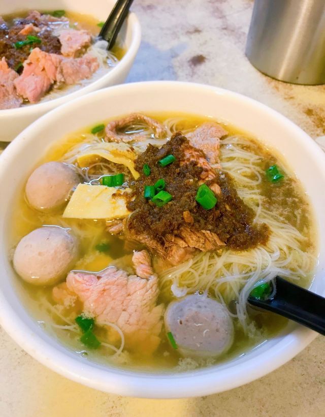 这家店最早是由马来华侨开的,已经差不多有60年的历史,一直都非常的火爆。这里的牛肉都非常的美味,牛肉丸更是都由手工捶打而成,非常的Q弹,牛腩则是很清淡,原汁原味的鲜美,算是客家的做法。 粉可以选择米粉、河粉、老鼠粉,也可以选择黄面、客家面等,吃法也有清汤和干捞的区别,可以根据个人需要自行搭配。 店里环境一般,店面也不是很大,需要注意的是,这里的午市和晚市不在同一个地方,不要走错哦。