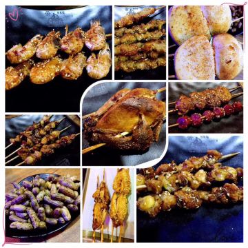 羊肉,牛肉串,炒方便面,毛肚锅,羊排,烤羊腿,烤肉皮,香煎大鱿鱼,烤饼,锡纸金针菇,奶茶,尖椒肉丝炒面,丸子拼,炝干豆腐丝,冰山雪莲,家常凉菜,水果沙拉,木耳,扇贝