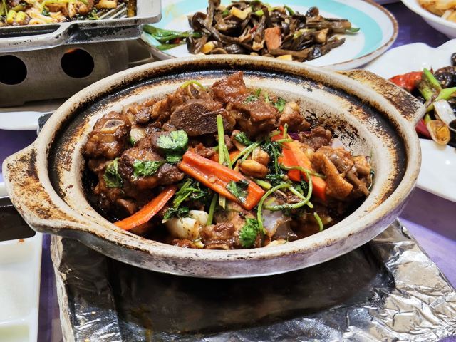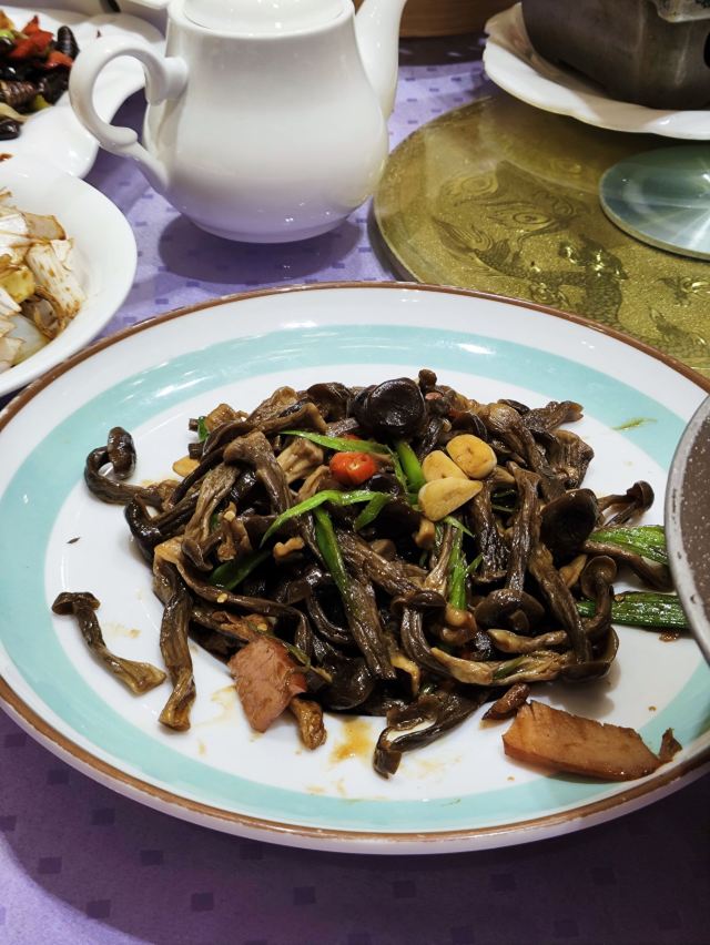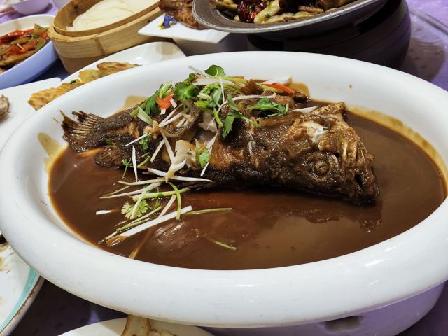 桃子妖妖妖穿越千里的爱恋。 从大连到本溪,四百多公里,晚上和老朋友约饭,居然约在了大连渔港,这缘分到了,真是躲也躲不开啊。开发区的大连渔港已经黄了,这家不知道和开发区那家有没有关系呢? 查了一下,这家店算是老店,在本溪开了十多年了。店铺位置不错,在广裕路上,离火车站和枫叶商务酒店都很近,方便喝多了直接回去睡觉,坐火车前送行也是好选择。 饭店门口有免费停车位,但这个数量和包间相比,还是差了一点儿,饭点可能会不够用。装修高端大气上档次,空间感、挑高都够用,装修年头应该是有点儿多了,略显陈旧,一般商务宴请也够用了。 看了一下菜单,价格不贵,12人的龙虾套餐也才1600,这价格在大连几乎是不可能的。啤酒有龙山泉,这点很惊喜,毕竟现在走遍全国,几乎都是青岛和雪花,想喝点儿当地酒真是难上加难。 我们是从大连来的,特意跟朋友叮嘱不要点海鲜,就点本溪当地特色的山野菜和家常菜,重要的是相聚,而不是吃什么东西。朋友也很给力,一道海鲜没点,点的全是家常菜,主打一个喝酒。 菜品确实比较家常了,别的没记住,就记住一个红蘑土豆片特别好吃,还有一个像茶树菇一样的蘑菇,但是是鲜的,做的也特别好吃;剩下的啥也没记住,就光顾喝酒了。 本溪的朋友本来就热情,但在这种当地小有名气的馆子吃饭,就是会有这种问题,来来回回遇到好几波敬酒的,还没咋地就喝迷糊了,白瞎这一桌子菜了。 本溪很好,还要再来。