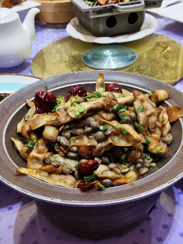 鲍鱼,老醋蛰头,香芋地瓜球,卤水鸭翅,蒜蓉芥兰,红烧海参斑,家炖海杂鱼,生炒秋葵,煎锅大海螺,酸辣蕨根粉