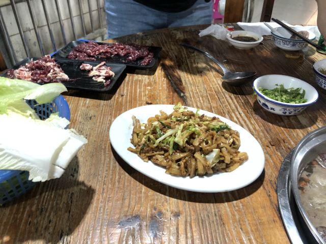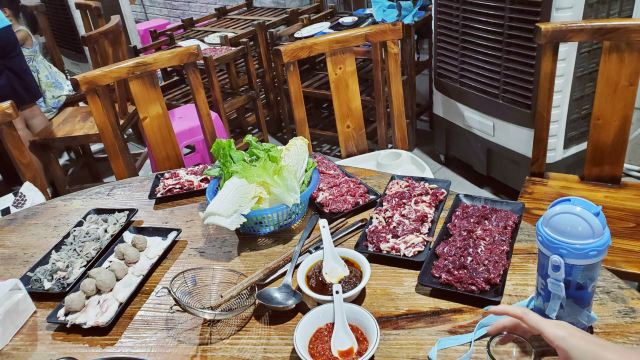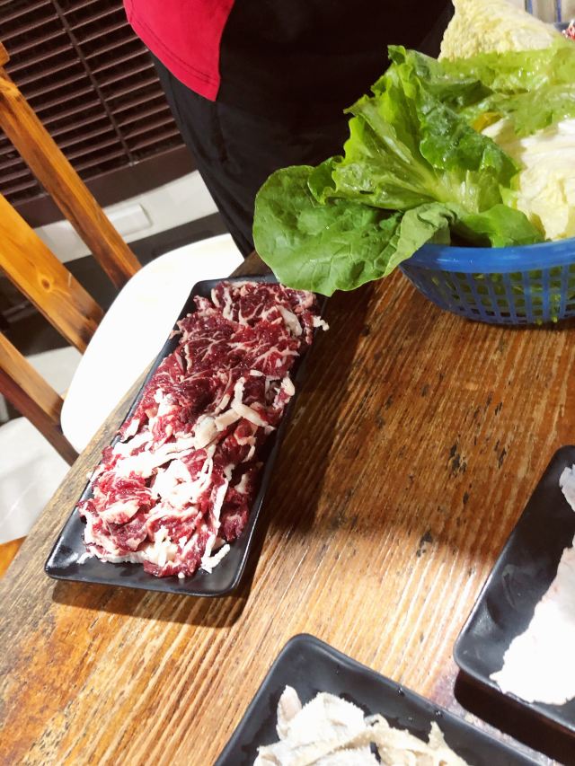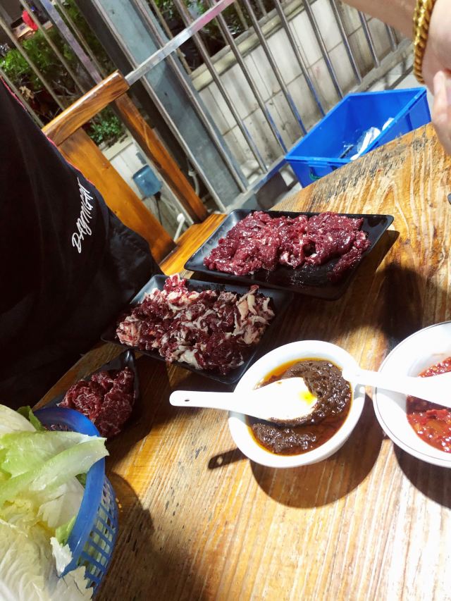 来潮汕当然要吃牛肉火锅啦!想起来就流口水~ 本来要吃另外一家的,但是太晚了,即将关门,而且没有几个牛肉品种了,就换了这家。 这家店外面看起来平平无奇,门面不大,里面其实别有洞天,还有露天的大桌。 几种牛部位都吃了,非常鲜美~门口有现片的地方,从玻璃窗可以看到。这里的服务员都是小孩子,可能周围小孩放假或者亲戚来帮忙吧~