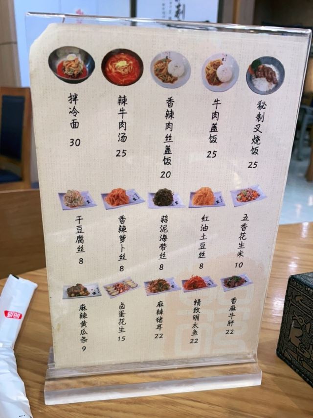 锅包肉,传统冷面,精致明太鱼,玉米温面,炸酱面,蔬菜炒面,豆浆面,拌桔梗,红油肚丝,蒜泥海带丝,石锅拌饭,香辣肉丝炒饭