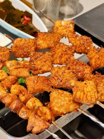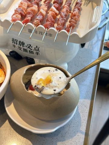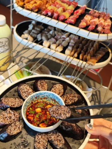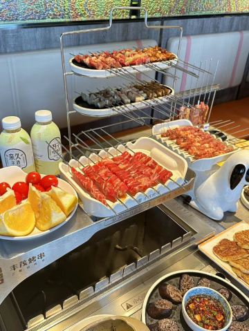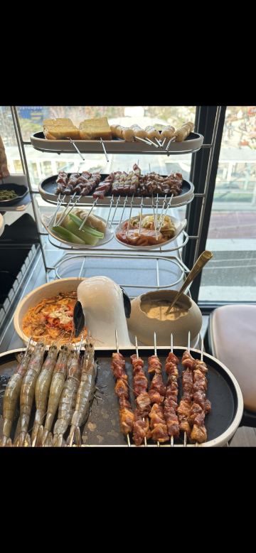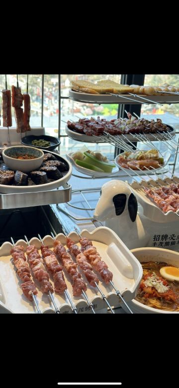 总体来说,非常nice。有一个小姐姐很热情服务,餐中一共来了好几次来帮助我们烤串儿,对于我们这些不太会烤串儿的人,简直太贴心了。每个桌子上都有一个可爱的小羊很可爱,问一下服务员才知道那个是串串儿的。放假了来玩儿,选择了这家店。肉质很新鲜,每一种肉都值得点一下尝尝哟,这是大蒜肥肠不肥不腻,很好吃,是自家菜的口感,也很不错,推荐:精品牛排串 大板筋
