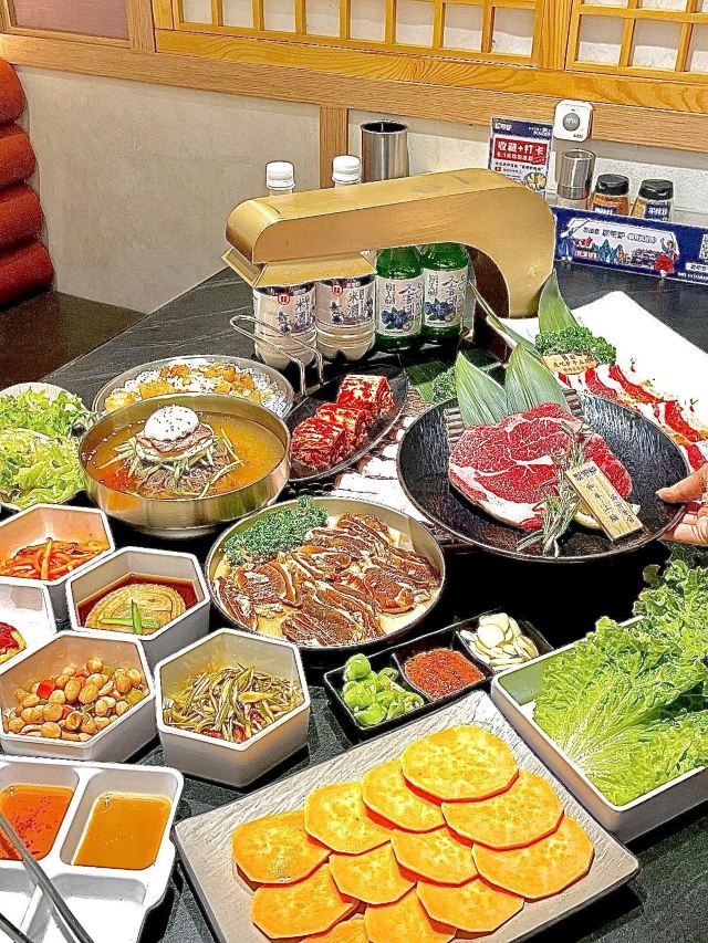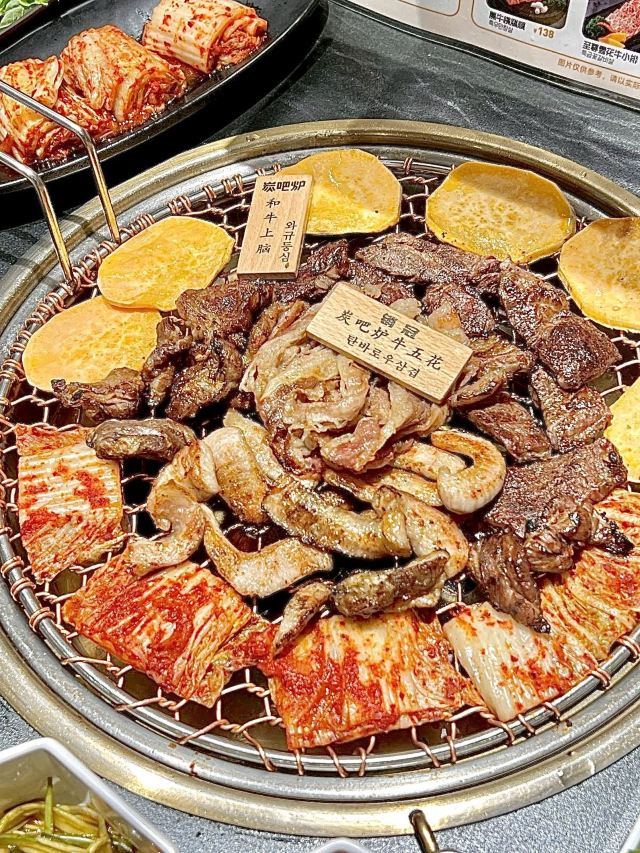 炭吧炉牛五花,精品五花肉,调味梅花肉,炭吧炉烤鱿鱼,辣味牛排肉,土豆饼,调味吾桑格,精品牛排肉,辣味烤牛肉,石锅烤牛肉,烤肉小菜,冰激凌,酱汤,米酒,韩式烤肉,海鲜葱饼,特色肥牛,厚切五花肉,羊排大串,调味牛腹肉,调味烤牛舌,烤肉配菜,五味子汁,草莓米酒,大酱汤