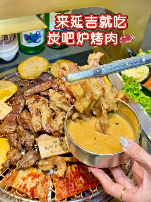 YoYo_0F5I7H4B延吉本地人说🥩为了这口肉我也得来 来延吉旅游,被本地人安利了这家炭吧炉,吃完直接封神‼️据说在延吉有两家店,都敲级火爆,去过的人没有说不好的~ 🥩牛五花 必点!薄厚恰到好处,在炭火上滋滋作响,油脂瞬间被激发出来,香气直钻鼻腔~蘸上店里特制的酱料,包上生菜🥬,一口下去,鲜嫩多汁,层次感满满,我一个人能炫两盘🍽️ 🐷烤大肠 处理得非常干净,没有一点异味~在铁盘上烤的时候看这个过程好解压🫕~烤至外皮金黄酥脆,内里软糯,咬下去还会爆汁,口感太惊艳~ 🥩和牛上脑 看起来新鲜,纹理清晰漂亮🥓在烤盘上简单一烤变色就能吃🥩入口即化,香味十足,能感受到牛肉本身的鲜美,每一口都超满足~ 这家店炭火的温度把肉的美味发挥到极致,服务也很热情周到,吃的好多在外地吃不到的延吉单品🍛来延吉旅游,想体验正宗朝鲜族烤肉,这家必须得去‼️ #延吉美食 #延吉烤肉 #炭吧炉 #延吉旅游攻略 #美食探店 #延吉打卡
