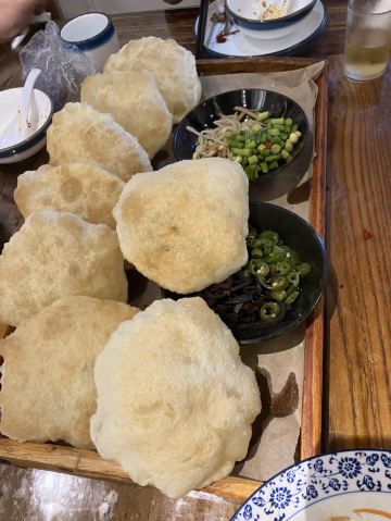 Guanzhong Road Shanwei Art Restaurant🥳陕味满满,还能听一段太棒的说书liveshow 2020-5-14 🥳陕味满满,还能听一段太棒的说书liveshow 来到华山营地,营地里没有晚饭,好吧,按照国际惯例搜一搜,Yes,竟然还有一个评价很高的陕西菜馆,太棒了 【环境】 如果说一楼还不够惊喜,那就请上二楼看看,简直就好像一座陕西老物件收藏馆,绝对比看博物馆更有意思,能看能摸能玩…老板真的是费心思,应该也是一个历史爱好者 【口味】 |葫芦鸡^38,其实跟平常上海吃的鸡没有相差太多,很好吃的,香酥,完全不会吃不惯 |泡泡油饼^14,也有点像小时候吃过的那种上海的油饼,可以空口光吃,也可以夹东西,就是饼很大,一只吃下去就够饱了,当然,面食必须是陕西很强项 【服务】 被这位掌柜的多才多艺惊呆了,一顿饭的功夫,一直给艾小米介绍陕西这里的人文历史,真的都是信手拈来的说书,声如洪钟,结果一问,自我介绍本来是文化团工作者,怪不得,真的超喜欢 人均52,吃出了陕味,吃出了文化底蕴,更是吃出了陕西人的好客之道,超值到了天花板 #艾小米的西游记# 2020 D2