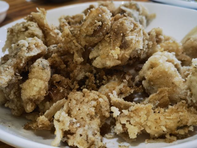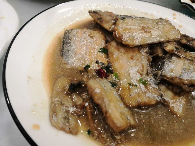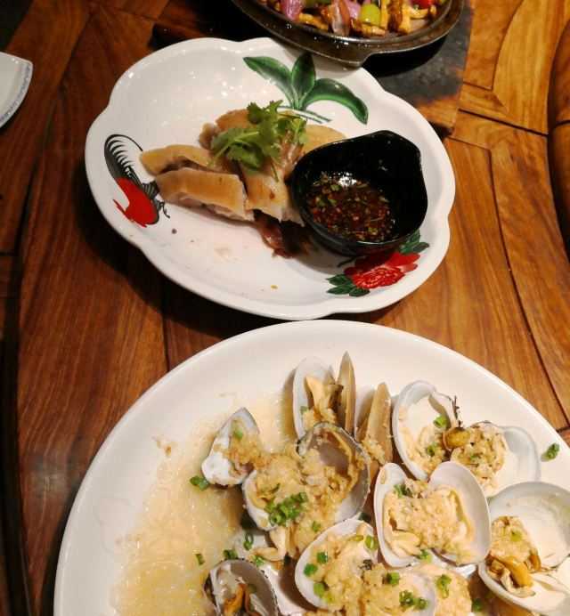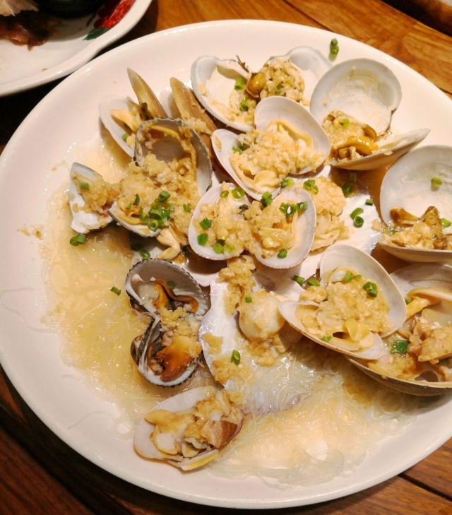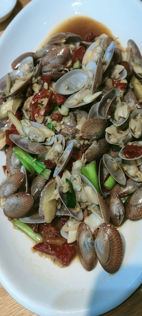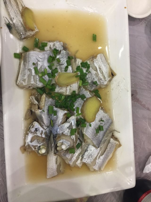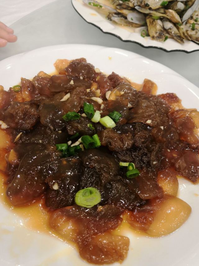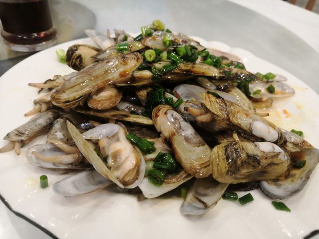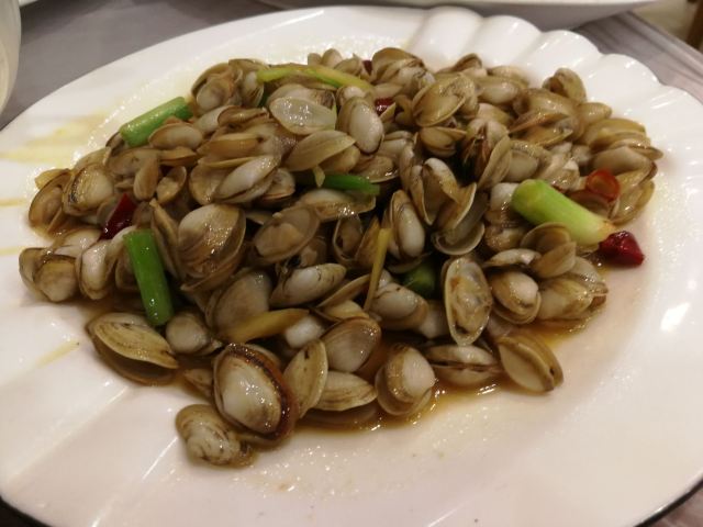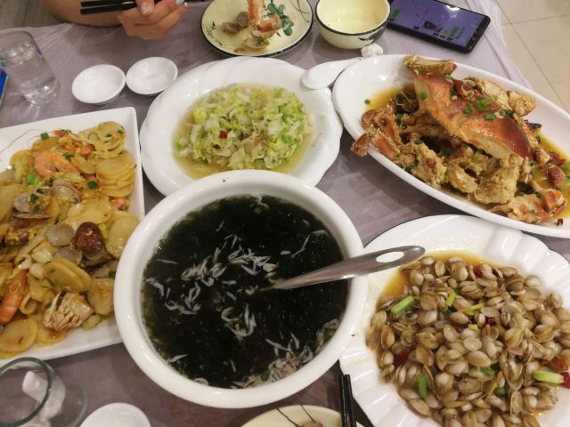 veradan吸取前一天晚上在沈家门一家海鲜排挡单点的经验,这次排到号就说要团餐。5个人14个菜是有点多,但划算呀,才588,也不要动脑筋点菜,反正鱼虾蟹贝螺鸡一应俱全。 海蜇,小朋友最爱,几乎包了。 蛏子,不是很大,也不肥。小朋友前几天不吃蛏子的,这次吃的很欢。 蛤蜊豆腐汤,我很喜欢,清单不油腻,鲜美。蛤蜊不少哦! 海草,不是日料的那种,不过很赞。 酱爆海螺,我不喜欢,觉得有点土腥味。第一次吃带黄的螺…… 炒土鸡块,味道不错的,吃了几顿海味,有道陆地的荤也算调剂一下。 红烧带鱼,舟山的特色啊,一定要尝尝,窄,薄,也算嫩,不过没有到油、入口即化的程度,味道不错,被我清盘。 椒盐豆腐鱼,以往很喜欢的,这次菜有点多,吃不动了,小朋友挑外面的脆皮吃,说“香” 清蒸青斑鱼,比前一天晚上沈家门的苏眉好吃,嫩。 雪菜鱿鱼,味道不错。 清蒸蟹,虽然是2只,但量不比前天晚上沈家门的3只少,而且黄膏也更多。 来吃团餐的回头客很多啊!