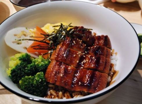 猪排滑蛋盖浇饭,唐扬鸡块,红豆莲子汤,纯肉肠,日式鳗鱼饭,秘制红烧肉盖饭