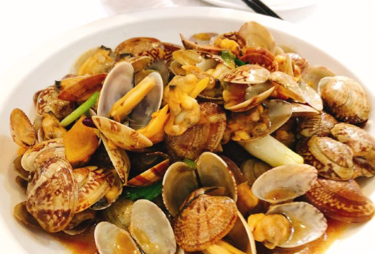 葱姜蛏子,粉丝煲,银鱼汤,鱼香肉丝,辣炒花蛤,小葱跑蛋,银鱼羹,对虾,木须肉,红烧杂鱼,娃娃菜,紫竹林啤酒,紫菜蛋花汤,油炸大黄鱼
