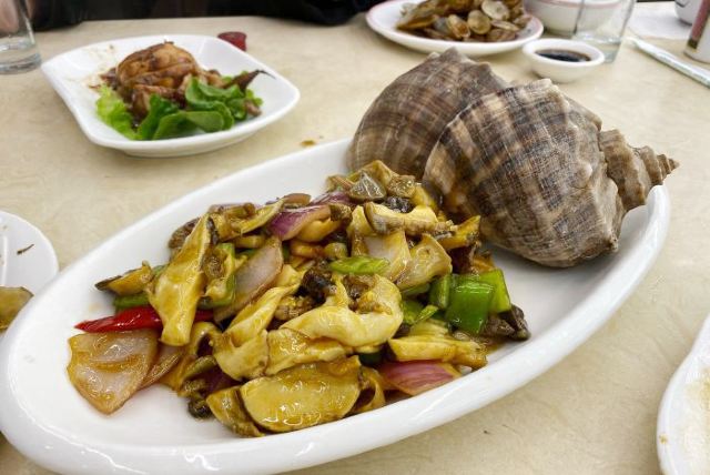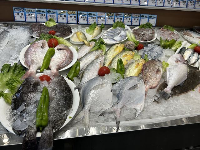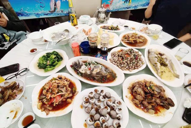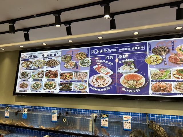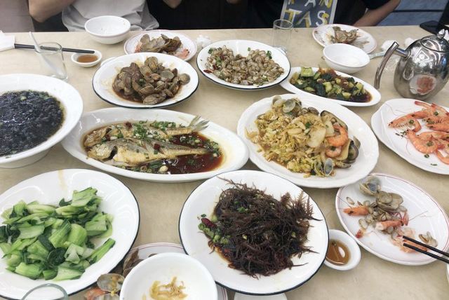 霸王蟹,葱姜炒,霸王蟹,红烧舟山带鱼,海鲜炒米线,白灼海对虾,酱爆章鱼,皮皮虾,葱油梭子蟹,葱油蛏子,大黄鱼,黄鱼籽烧豆腐,红烧东海小黄鱼,虾蛄椒盐,梭子蟹,银鱼煎蛋,韩国泡菜,凉拌海草,新西兰牛仔骨,黄瓜拌海蜇,葱油黑石斑,油炸青花鱼,清炒时蔬,石斑鱼
