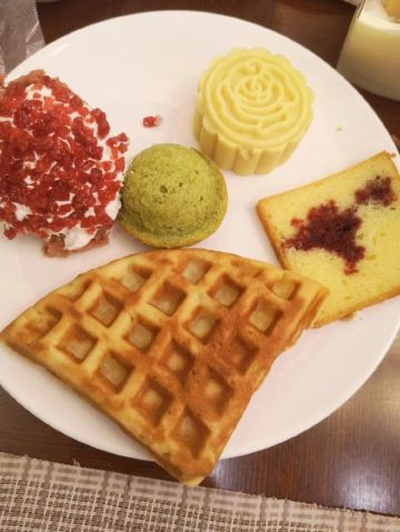 临沂火车站附近,这家四星级酒店有名气,自助早餐赠送的,环境居然还不错,看有西式的点心不错,吃了点蛋糕饼干,山东的苹果也很甜的。
