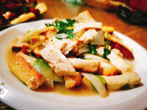 早喝一碗糁,午饭全羊汤,晚上吃炒鸡,在临沂的一天,你可以这样吃。 临沂炒鸡,绝对算是餐桌上的一道硬菜。“没有一只鸡能活着离开临沂”这句话深刻的诠释着临沂人爱吃鸡,蒙阴的光棍鸡、平邑的回锅鸡、沂南的大庄烧鸡等等,每个县区都有自己独特的吃鸡方式。在临沂市区,炒鸡是最常做的吃法。临沂炒鸡店成百上千家,每个人心中都有属于自己的味道,所以要说哪家最好吃,那肯定是争论不已。不过论名气,向民炒鸡、高伟炒鸡、王小二炒鸡都是异常火爆。 向民炒鸡,一家开了二十多年的老店,如今依旧吃客不断、异常火爆。我们是晚上八点多过去的,费了九牛二虎之力才停好车,门口的匾额写着:向民炒鸡老店。刚进门,就是烙烧饼的,香味扑鼻而来。小方桌、马扎子,大厅里座无虚席,找到空桌后就开始扫码点菜。我们就三人,点了个68元的炒鸡,另外还点了蒜黄、豆腐等家常菜,当然鸡蛋汤、武大郎烧饼也是要上的。 炒鸡,是第一个上的菜,微辣还是挺辣的。选自本地的小公鸡,肉质炒出来特别嫩,鸡肉非常入味,咬一口就和骨头分离。周边油炸的小饼,蘸着鸡汁吃,太拉馋了。不过瘾的话,在上一份武大郎烧饼或者煎饼,绝对能吃好、喝好。