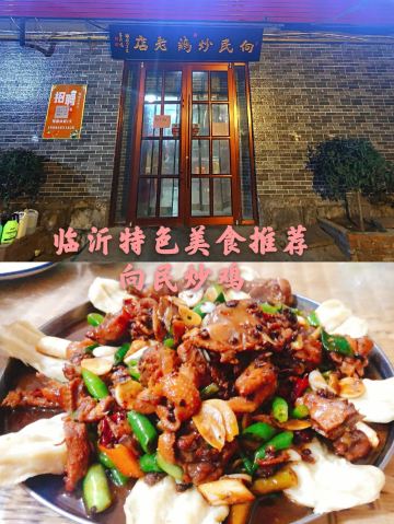 想星星走天涯早喝一碗糁,午饭全羊汤,晚上吃炒鸡,在临沂的一天,你可以这样吃。 临沂炒鸡,绝对算是餐桌上的一道硬菜。“没有一只鸡能活着离开临沂”这句话深刻的诠释着临沂人爱吃鸡,蒙阴的光棍鸡、平邑的回锅鸡、沂南的大庄烧鸡等等,每个县区都有自己独特的吃鸡方式。在临沂市区,炒鸡是最常做的吃法。临沂炒鸡店成百上千家,每个人心中都有属于自己的味道,所以要说哪家最好吃,那肯定是争论不已。不过论名气,向民炒鸡、高伟炒鸡、王小二炒鸡都是异常火爆。 向民炒鸡,一家开了二十多年的老店,如今依旧吃客不断、异常火爆。我们是晚上八点多过去的,费了九牛二虎之力才停好车,门口的匾额写着:向民炒鸡老店。刚进门,就是烙烧饼的,香味扑鼻而来。小方桌、马扎子,大厅里座无虚席,找到空桌后就开始扫码点菜。我们就三人,点了个68元的炒鸡,另外还点了蒜黄、豆腐等家常菜,当然鸡蛋汤、武大郎烧饼也是要上的。 炒鸡,是第一个上的菜,微辣还是挺辣的。选自本地的小公鸡,肉质炒出来特别嫩,鸡肉非常入味,咬一口就和骨头分离。周边油炸的小饼,蘸着鸡汁吃,太拉馋了。不过瘾的话,在上一份武大郎烧饼或者煎饼,绝对能吃好、喝好。
