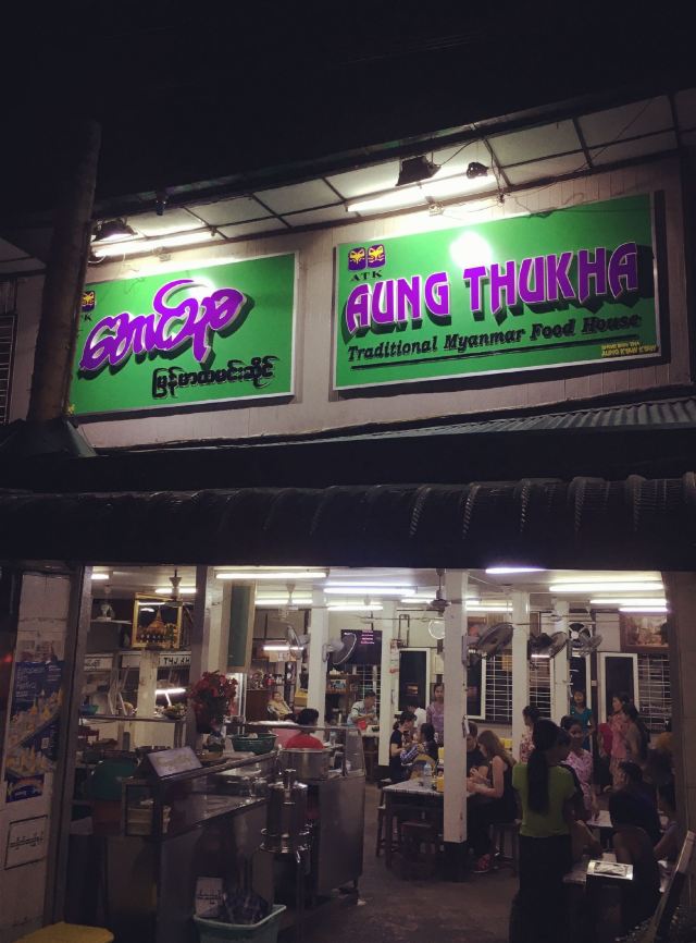 Aung Thukha,位于仰光大金塔北面的缅甸菜餐厅,lonely planet打星号推荐。门面脏乱,店里算干净整洁👍味道么尝了便知,要了两盆饭,结账大约25元人民币,吃饱回住处休息[可爱]
