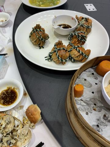 amydog🙂各种排长队的泰州早茶 2023-8-6 放弃了酒店的免费早餐(主要也是真的太一般般),一群人顶着大太阳步行一身汗,徒步到了攻略中的泰州早茶店 一进店就戆特了,介长额队伍😬一楼排队点单付钱,二楼自己找座位,当然也是等位排队中 马上要兵分两路,一路排队点单,一路上去搞座位 要找整张桌子大家做一起真的很难,小群的人又不够聪明,三三两两分开排在别人座位后面...艾小米实在看不下去了,一出手,当然就能搞到一个包房大桌子😂😂😂这里注意,包房有分低消和不低消的两种,低消是人均100,艾小米当然可以搞一个没有低消的啦,估计没有艾小米,这顿早茶他们那8个猪头也是吃不到了🐷 【环境】 看不清,除了数不清的人头 【口味】 |蟹黄包(只)^30,很喜欢,蟹黄很多,馒头也很大,倒点粗色色一一 |蟹黄小笼汤包(5只)^26,没有露么劲,而且端上来破的比例很高 |鱼汤面^8,小碗,挺好的,很浓稠,小碗也不容易浪费,虽然实际也都浪费了,建议胃口不大的还点了其他点心的小伙伴,绝对可以两人一碗分分哒哒米道就好 |长鱼胶^80,这大概是镇店之宝了,其实就是炸的黄鳝,很一般,上菜的阿姨看得很牢,反复盘问坐在最靠外面的小伙伴,你们到底有没有点过这个,这个很贵的...搞得小伙伴很不爽,是不是看上去我像吃不起的人?😂😂😂 说实话,这样子的早餐有点贵