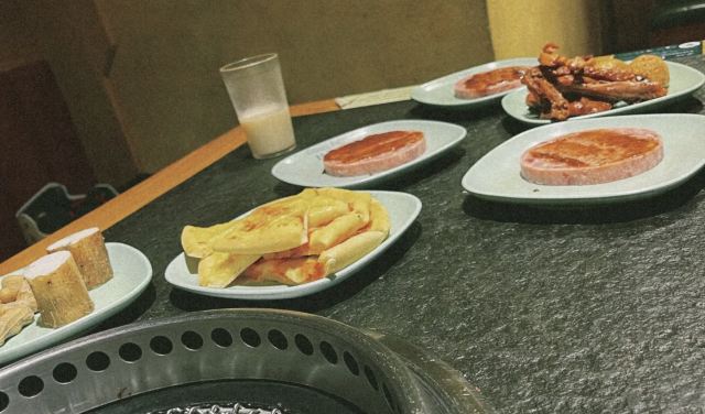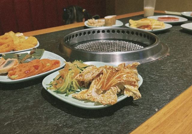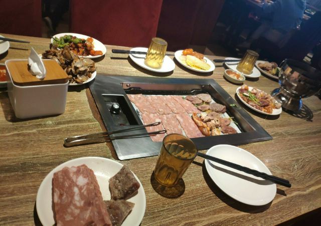 轻轻的一个蚊菜品很丰富,关键是58块钱的价格很物有所值,不限量,不计时,菜品补充也十分及时,环境也很干净,服务员及时更换油纸。 肉是真的硬,培根满满的铺满整个烤架才是正确的吃法,烤肉味道很不错就是要眼疾手快,要不然抢不到的撒,糖醋里脊蛋炒饭好吃,这个是我吃自助唯一要来的主食。 橙汁草莓汁兑水兑的有点过分,淡的出奇,不过有免费的啤酒,所以还勉强说得过去,冰激凌很好吃,巧克力喷泉棉花糖更不用说,甜品达人的最爱。可惜海鲜真的少,三文鱼没有看到,只能说中规中矩吧。 如果想来大口吃肉,过过瘾的小伙伴可以来试一下,虽然有一些待改进的的地方,但是总体上来说,性价比还是可以的。