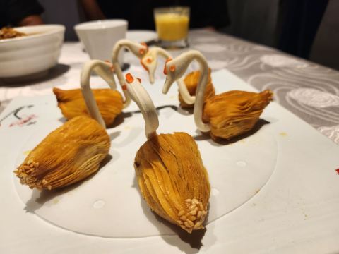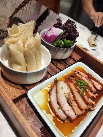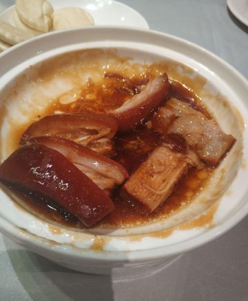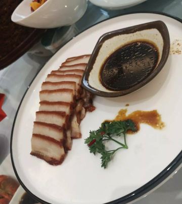 轻轻的一个蚊以前其实就老去香园楼去吃饭,品质是一直很稳定的,还有很多的新花样。比饭点早个20来分钟去,上菜也超级快。 清汤口蘑狮子头很适合口味清淡的人,但也不是寡而无味的那种,醇厚的汤汁很赞。 红薯焖鸡腿是甜口酱香的,红薯香甜软糯,鸡腿也很入味。 那个什么石锅虾也很美味,下面垫的是杏鲍菇,虾上面有蒜末,杏鲍菇又有虾的鲜甜。 浑源凉粉顺滑劲道,大夏天就是应该嗦粉才快乐。 大刀肉片,柴沟堡熏肉什么的更不用说,我这种肉食动物的最爱。咳咳咳,应该配两瓣蒜。。。 鱼香肉丝必点,很很很甜,但是我口重,所以很和我胃口。 性价比蛮高的嘞,档次也很高,来这里吃饭十有八九都能看到有各种的酒宴,各种形形色色的人。可以试一试哇。
