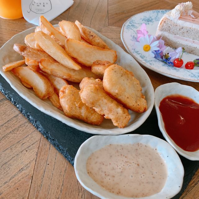 咖啡店小达人最喜欢神溜咖啡店啦!这家店位置位于银都花园里面,从彰化路的门进去下面一排小别墅的第一栋就是了,很好找。 【环境】可以说是分了四层,一进门就花团锦簇的处处皆风景。天气暖和了下面的室外也坐了不少人,有秋千很适合拍照。二层有一个花鹿头,靠窗的桌子下面也铺满了干花,拍照很好看,三楼是个小服装店,上到最高的地方就是拍照达人们用武的地方啦!可以看到海景,拍照也很出片,基本上这的小姐姐都要在这拍上一会。 【口味】咖啡味道中规中矩,蜜桃乌龙蛋糕虽然个头小小但是吃起来不算腻,不过作为甜品来说不怎么惊艳。气泡水冰很多但是味道还不错。小食拼盘薯条是粗粗的那种,爱了! 【总评】小姐妹拍照打卡胜地,景色挺不错的。价格不算便宜,性价比一般,基本来了都是为了拍照。