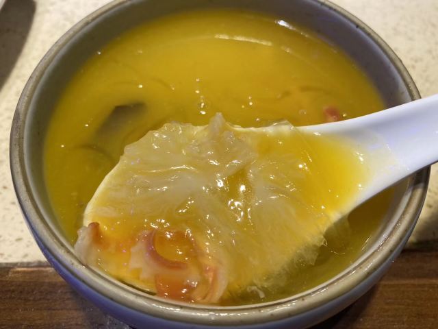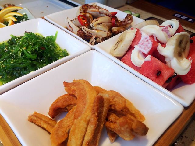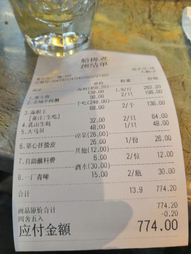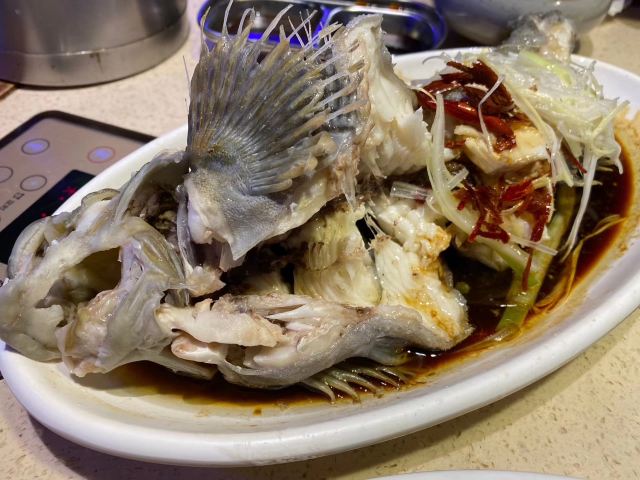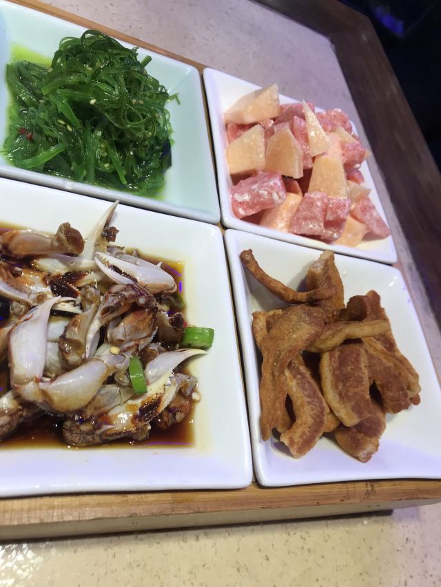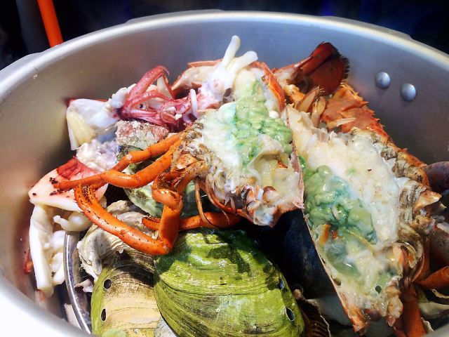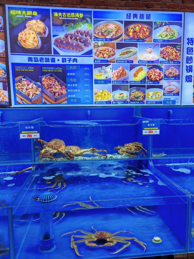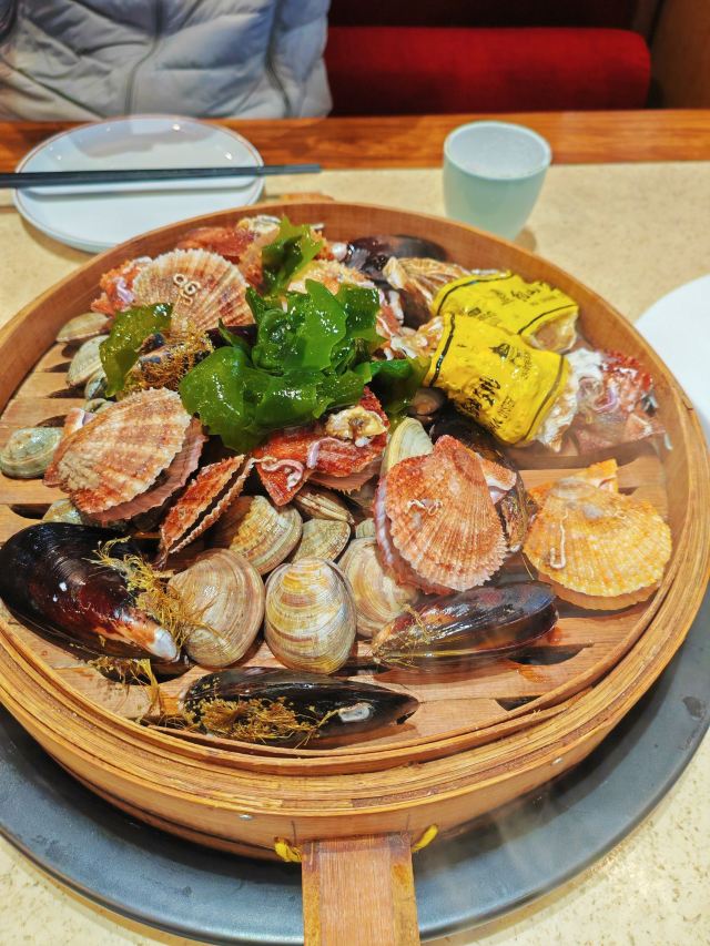 陌染MM去山东旅游,这一站来到了青岛,我住的酒店就在五四广场旁边,晚上听介绍所以来到了云霄路美食街找吃的。冬日里的云霄路显得很冷清,晚上基本上没有人在路上走,我们看了几家餐厅,刚好遇上这里门口站着一个广东人在拉客,我们也是来自广东,同声同气,所以也就进来试一下了。 这里主要是吃蒸汽海鲜的,主打海鲜还是蒸着吃最原汁原味,当然也有炒菜,看客人的喜好吧。一进门,他们就会让你先点菜,海鲜池里有很多活的海鲜,也有像贝壳类的已经经过处理,添加好了配料在上面,可以随时进锅。还有不少的菜品,例如:凉菜、主食、蔬菜都是有样品的,让客人看着点菜,说真的看着是什么都想吃。 这里的海鲜一点都不便宜,不便宜,不便宜,重要的事情说三遍,大家一定要看清楚标价,以免产生误会,土豪忽略。我们点了一条鱼,是店家介绍的,说是当地好吃的鱼,活蹦乱跳的鱼看上去就大概一斤多一点的样子,后来买单的时候看了账单才发现,光是这条小鱼就300多元了。乳山生蚝要33元一个;一条小活海参要78元,刺身两条起卖;活虾个头没有传说中38元一只的大虾大,118元一斤,他们所谓的一斤是按八两算;海胆蒸饺一份就是一打,88元一份。我们两个人一顿下来将近1000大元。 这里的食物味道非常淡,感觉根本没有下盐,清蒸的海鲜不咸,就连碗仔翅,都是淡淡的,我还要另外加玫瑰盐。