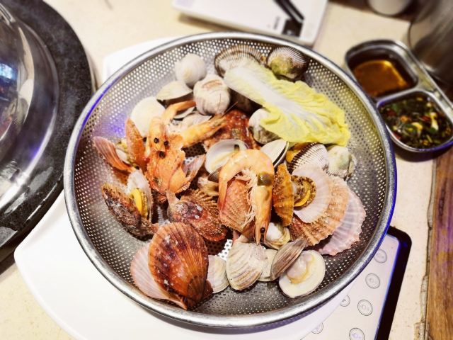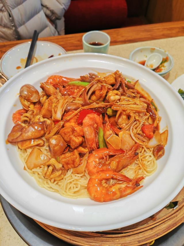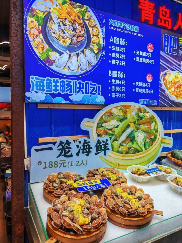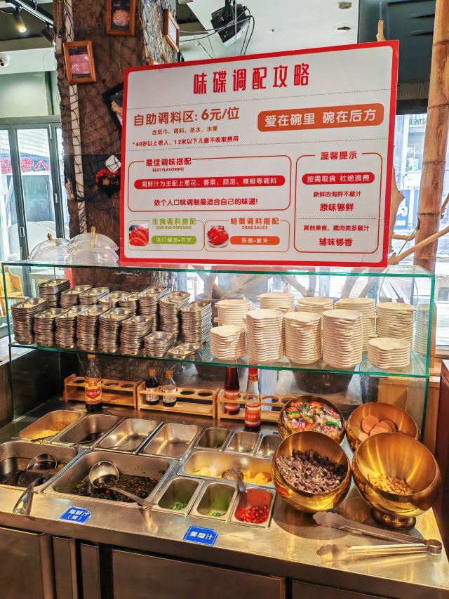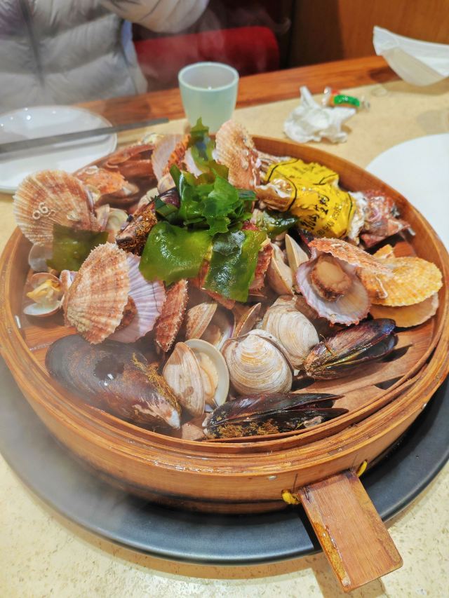 青青岛-最近探店搞活动最用心的一家餐饮店了!店家位于云霄路南头,靠近香港路,离地铁口也很近走路也就5分钟。团的餐和朋友来吃,入桌后店员验券后,直接用蒸锅把所有的餐具消毒,这家点的特色就是蒸海鲜,所以每个桌子上都配着一个蒸炉。上餐是很快的,新鲜的海货不用多久,上锅蒸9分钟就行,等候期间可以去自助料台选个海鲜汁和一些小食。时间到了以后,店员主动过来打开蒸锅,海鲜说实在的真是很新鲜,贝类为主,作为一个青岛银对海鲜的鲜度还是很苛刻的,居然吐沙很好没有一个牙碜的!!蒸的鸡肉是有点粤菜风格,豆豉调味,鸡肉又嫩又鲜。荤素搭配,套餐里面还有个炒和菜,味道也不做。惊艳的是主食,正常海鲜面的话是汤面比较多,这里居然是炒面,而且惊人的是海鲜盖的满满的,量大又实惠!除了口味外,服务员能主动服务的真是不多见,这家的服务质量也很好!!!