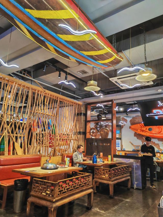 餐厅整体的装修有种海边渔村的风格,各种海洋元素的装饰非常有代入感,复古而具有创意,用餐氛围很棒。海鲜的食材非常新鲜,刚开始蒸的时候还是活蹦乱跳的,蒸出来非常入味。服务员还会主动帮忙把海鲜的壳敲开,服务很周到。