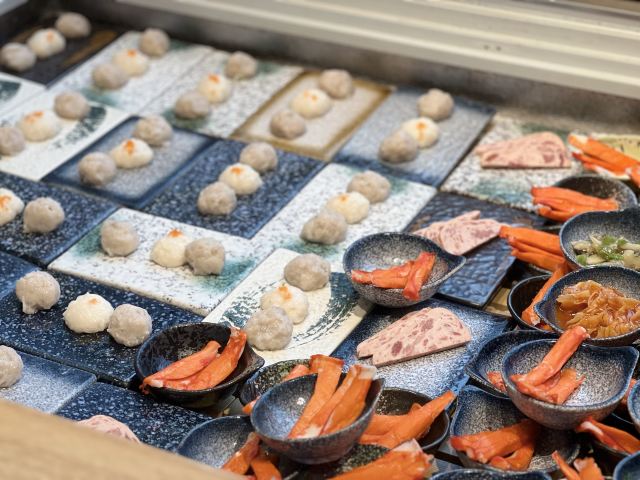 朋友请客选了这家寿喜烧自助, 基本到店之前都会先看看差评,去之前还有点忐忑。位置在中联广场很好找,日式的门头。我们工作日中午去的人还不算很多。 【环境】都是小包间,私密性还不错,提前预约就可以。 【口味】要了寿喜锅汤底和花椒鸡汤底,个人更喜欢寿喜锅的汤底,个吃当天没有三文鱼腩了,我们要的最贵的那个,个吃的蒜蓉粉丝龙虾味道很一般不入味,吃起来发腥。鹅肝和鱼生还不错。中午上点的肉倒是比较快,三个女生还想着早点点再店一轮,无奈食量太小,基本喝饮料喝饱了。下面可以自取马卡龙冰淇淋等小甜品。 【总评】口味还不错,M6和M8的口感都还可以,除了个吃有点拉胯其他的没什么大问题。