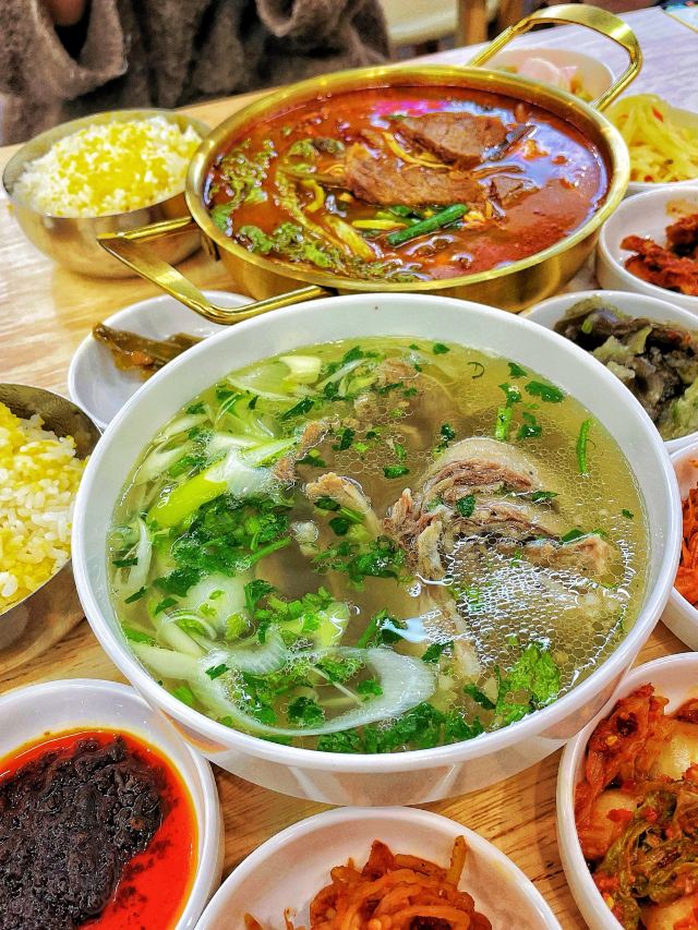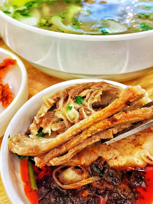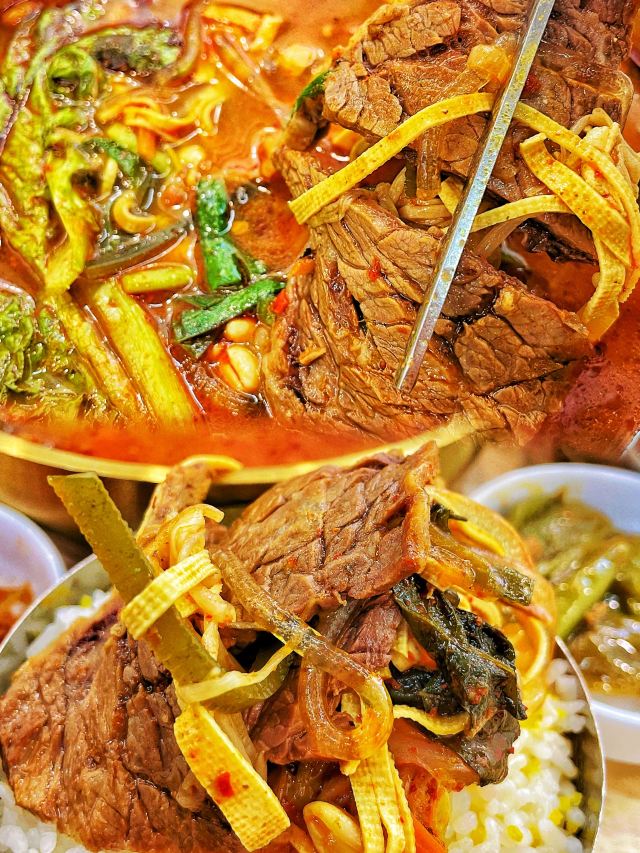 冰澈大人这个天儿,没有任何食物能比一碗热汤饭能带给我快乐‼️ 吃遍了青岛诸多汤饭,这家“宁奶奶汤饭”已晋升为我心目中🏆TOP1⃣️汤饭馆儿了!盲点不踩雷的那种! 🔸「辣牛肉汤饭」💰39r 料给的也太足了!光大片的牛肉就好多块!牛肉是卤好的那种,类似于兰州的牛肉面馆子里卖的那种肉,品质超级棒。汤头微辣,但掩盖不了汤里的肉香。配菜有海带丝、嫩豆腐、豆皮、粉丝等等,一碗下去头上冒出来了薄汗,太太太爽了! 🔸「招牌牛肉汤饭」💰29r 这里面的牛肉是炖出来的,肥瘦相间,超级超级嫩。汤头没有用任何的高科技,就是牛骨熬制出来的那种最简单纯粹的鲜香。老板会给一叠紫苏辣椒酱,有点点橄榄菜的口感,蘸着牛肉吃也是一绝。 🔸「米肠」💰26r 我一个不爱吃米肠的人居然会觉得好吃!没有任何的腥味,外皮很薄很韧,里面的米软软糯糯的。而且这家调制的蘸酱也好吃。 ✅另外,它家的小菜和米饭都免费。小菜有8⃣️种,都很高的水平。最推荐那个桔梗和尖椒~米饭是跟小米一起蒸的,甜香甜香的。 📍指路:宁奶奶汤饭(万达cbd负一层,从家家悦那个电梯下去,再完美攻略旁边) 推荐指数:🌟🌟🌟🌟🌟