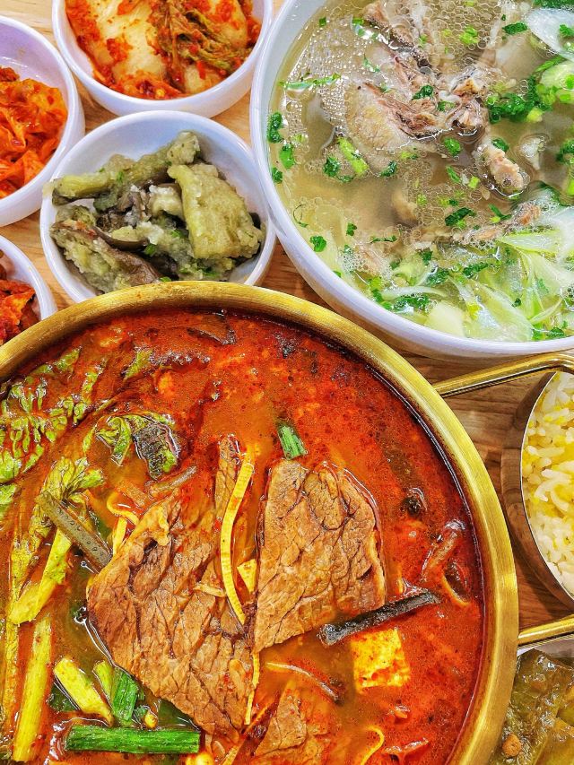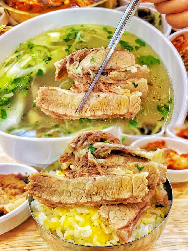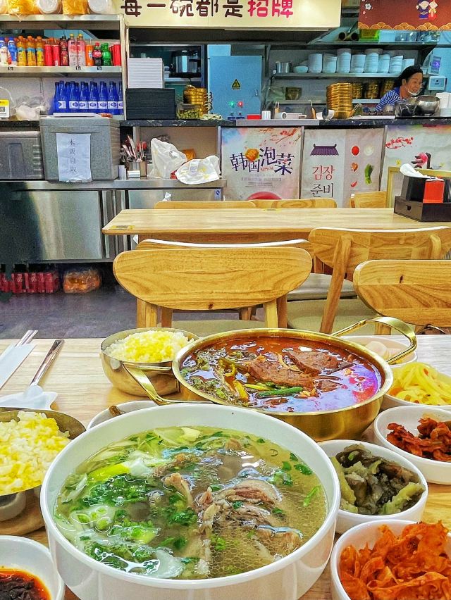 这个天儿,没有任何食物能比一碗热汤饭能带给我快乐‼️ 吃遍了青岛诸多汤饭,这家“宁奶奶汤饭”已晋升为我心目中🏆TOP1⃣️汤饭馆儿了!盲点不踩雷的那种! 🔸「辣牛肉汤饭」💰39r 料给的也太足了!光大片的牛肉就好多块!牛肉是卤好的那种,类似于兰州的牛肉面馆子里卖的那种肉,品质超级棒。汤头微辣,但掩盖不了汤里的肉香。配菜有海带丝、嫩豆腐、豆皮、粉丝等等,一碗下去头上冒出来了薄汗,太太太爽了! 🔸「招牌牛肉汤饭」💰29r 这里面的牛肉是炖出来的,肥瘦相间,超级超级嫩。汤头没有用任何的高科技,就是牛骨熬制出来的那种最简单纯粹的鲜香。老板会给一叠紫苏辣椒酱,有点点橄榄菜的口感,蘸着牛肉吃也是一绝。 🔸「米肠」💰26r 我一个不爱吃米肠的人居然会觉得好吃!没有任何的腥味,外皮很薄很韧,里面的米软软糯糯的。而且这家调制的蘸酱也好吃。 ✅另外,它家的小菜和米饭都免费。小菜有8⃣️种,都很高的水平。最推荐那个桔梗和尖椒~米饭是跟小米一起蒸的,甜香甜香的。 📍指路:宁奶奶汤饭(万达cbd负一层,从家家悦那个电梯下去,再完美攻略旁边) 推荐指数:🌟🌟🌟🌟🌟