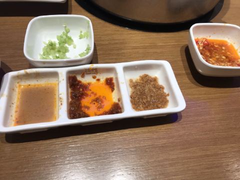 他家的蘸酱一碟三味, 辣的咸的甜的,三种混合最好吃, 他家的辣酱挺辣,甜味的是花生酱, 咸味的算是沙茶酱,也特别好吃。 潮汕牛肉锅就是涮肉,各种好吃, 这几种牛肉,都是瘦肉居多, 简单涮涮来个七成熟的口感不能再棒, 五花腱还有一小块筋,口感和嚼头翻倍。