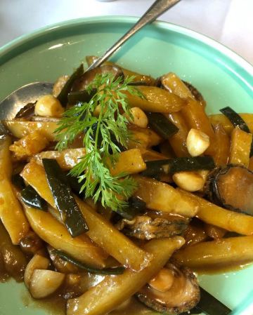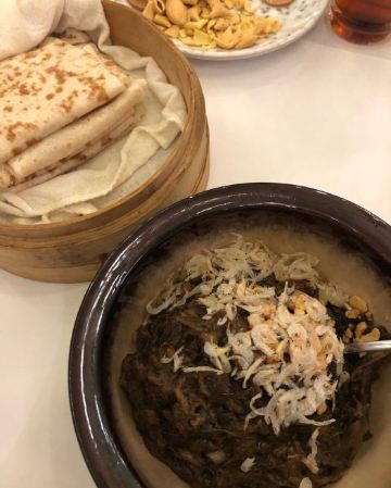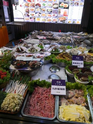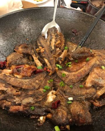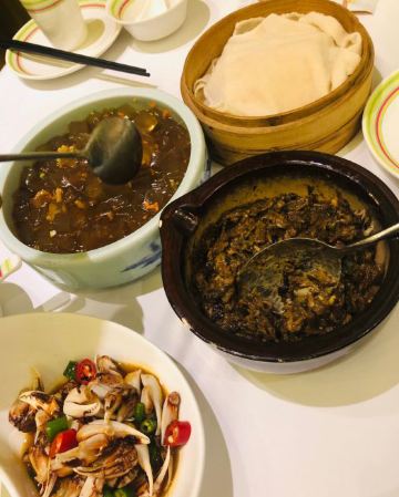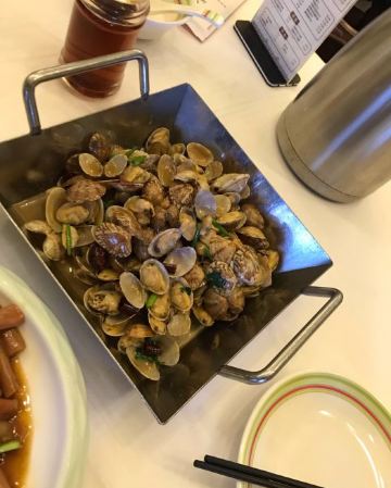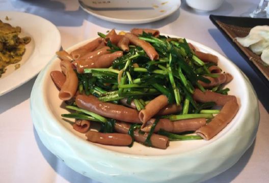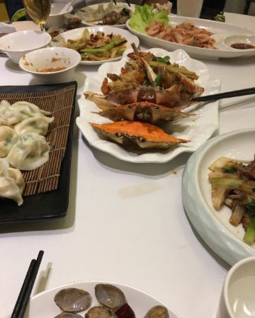 麻辣蟹钳特别惊喜,酒糟加芥末,清爽味重够劲,壳很容易咬开,里藏的的滑嫩蟹肉轻吸入口,回味十足 开海虾水饺,鲜虾为主,韭菜为辅,每只嫩白圆润的水饺皮里都包裹着两三枚鲜虾,汁水浓郁 蒜香海肠,脆嫩有韧劲,口感略有些像重庆的鸭肠 韭黄鲜比管我也很爱,新鲜小管搭配韭黄,无辣不欢的我吃得完全停不下来 辣炒花蛤,吐沙吐得特别干净,处理也很到位 老青岛海鲜疙瘩汤,虽然最后已经吃撑了,还是忍不住喝了两碗,稠稠的很好喝 青岛老炸肉,有点酥肉的意思,五花肉香酥,不吃肥肉的人都能多吃两块 人均才90,性价比很高了。