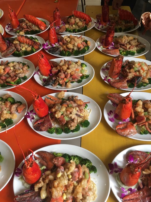 碳烤猪颈肉,奇妙虾球,毛血旺,鲁菜酱货拼盘,菠萝咕咾肉,油泼鲈鱼,蒜香小排,杏鲍菇牛柳,牛肉粒,干锅山药