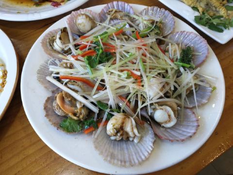 几年前在这家吃挺好,后来他们换了一种蒜蓉,所以放蒜蓉的菜不如原先好吃了。 上次来吃的肉末鲍鱼很好吃,这次吃的肉末鲍鱼里面肉末几乎无,鲍鱼没处理好,肉咬不动,发艮。 油泼扇贝味道应该是没问题,但是我来的季节不对,扇贝已经不是很肥了。 手撕包菜做得非常好。 总之之前来吃一直很好吃,慢慢的品控变了,出品有好有次。