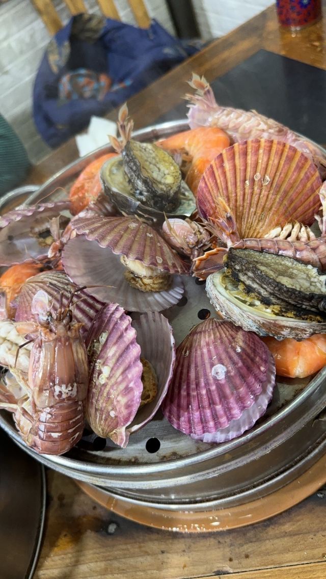 YoYo_4Z0G0L0N大锅蒸海鲜的另一种方式,改成一层一层的笼屉蒸,按照蒸煮时间摆放食材,然后一层一层的吃,食材肯定是新鲜的,每个桌都有一位阿姨给服务。