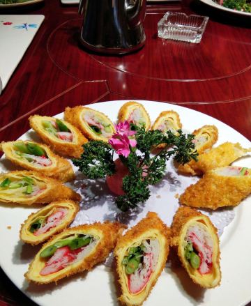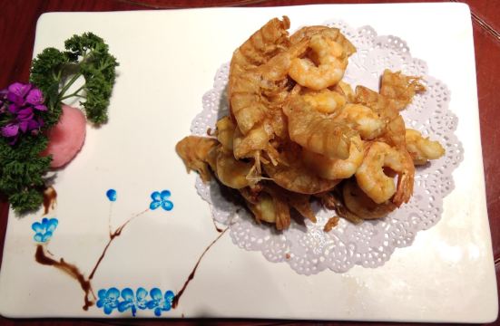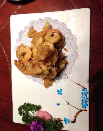 听闻爷爷家宴的家常菜不错,这就种草了[种草][种草],约三五好友来[拔草][拔草] 位置在延吉路人才交流中心斜对面,楼下是家家悦超市,停车️有些困难,周边收费停车场,建议公共交通 一进门有一间很大的房间,目测三十位能坐下,适合家族人多的聚会,好热闹。服务员小女生服务很周到热情,会把你带到房间,然后倒茶等。 金牌脆皮虾,这个店的主打产品,68元一份,很大一只,把壳和肉分离开但还连在一起下锅的,出品后很好看,虾肉嫩壳酥脆,好像大多抢虾壳吃了,放凉后依然很酥脆,五星推荐 海鲜春卷,48元一份,外皮炸的酥脆,蛋卷里面夹着蟹棒,粉丝,和菜,要一口吃掉,才能吃出感觉,所有味道融合在一起,而且不掉馅[偷笑][偷笑] 螃蟹面鱼,真实名字不知道,虽然是主菜,我反而喜欢里面的面鱼,筋道好吃,充分吸收了螃蟹的新鲜汤汁,更是点睛之笔。