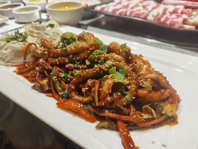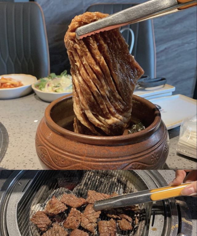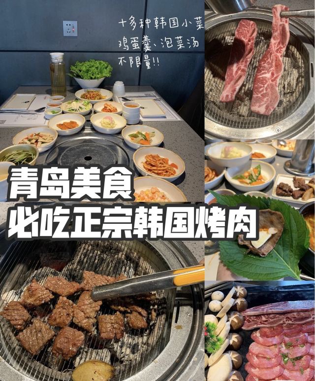 YoYo_8P7V7U9E!!青岛必吃韩料排行榜NO1|肉加韩国料理 青岛城阳必吃榜韩国烤肉店你还没去吃嘛! 我和朋友早早的去了大概11点到特别意外二楼预约的已经坐的满满!!!我们吃到11:30时 候,一楼也满了一波接着一波太夸张了人好多这家店也太火了吧! 位置:城阳财富中心店(门头挺显眼的比较好找)环境:里面风格就服务: 【服务】店里的人都很懂哈哈哈哈哈像我们这种爱拍照的都会等我们先拍照再服务帮你烤肉!还有一个就是服务员都超级了解每个套餐里面有什么,多给我们上了一个肉,马上就询问原因哈哈哈哈好厉害(老板给那个小姐姐加鸡腿!) 【口味】菜品: 以下是我觉得好吃的优先级! 肉加香翁牛排:这个是他家的特色,牛排放到小香翁里面腌制过!还有两只活鲍鱼 牛五花:肥瘦相间,肥而不腻,分量也可以蜂糕五花肉:肥而不腻,腌制过挺香的 海鲜葱饼:这个也很大一张饼不错!鸡蛋味浓重 石锅拌饭:这个拌饭的料很足 真味炒章鱼:这个是韩式辣酱炒章鱼如果加入年糕章鱼的量少一点价格改为一般就更好了!还这个可以有辣度选择 鸡蛋糕:刚上的时候热乎的,蓬松感口感嫩滑!