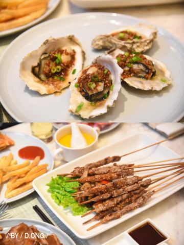 三文鱼刺身,蒜蓉焗生蚝,慕斯蛋糕,口水鸡,清蒸鲈鱼,甜甜圈,小龙虾,榴莲蛋糕,冰激凌,刺身,牛排,明火烤肉,三文鱼,铁板鱿鱼,拿破仑,烤大虾