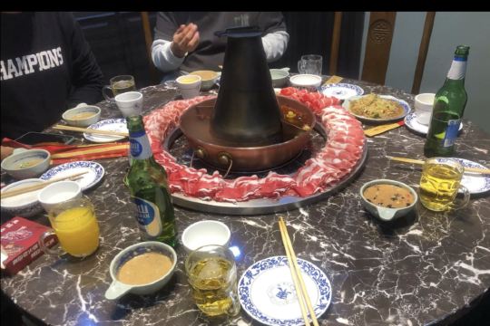 食材挺新鲜的,这样一大圈肉各种牛羊肉都品尝到了,觉得哪种好吃再要几份,但是要赶紧吃靠着铜锅时间长了就蔫了,还有免费小零食非常好吃,麻酱味道也不错,唯一缺点就是没有番茄锅底,卫生打扫的很干净,服务员服务态度也很周到,人气很旺,在二楼基本上都满座了,包间也不错,整体来说一次不错的体验,非常哇塞,。!以后会经常光顾