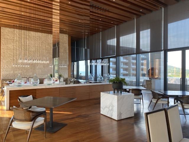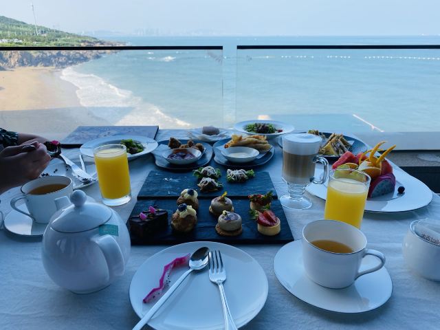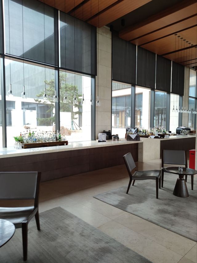 青岛涵碧楼是几年前亲戚推荐的,心心念念,这次回青度假和亲戚见面约在这里。 可能是疫情原因,感觉外观有些旧旧的痕迹。室外的休闲木桌椅也斑驳掉漆了。 涵碧楼的建筑设计真的是绝,在建筑中融合光影,以及嵌入了园艺。 大堂还是很气派的,酒窖里面红酒很多,温度也很冷。我们选择在大堂一角下午茶。 下午茶套餐也很丰富,至少欣赏海景吃了这些点心还是很满足了。 另外也推荐涵碧楼的温泉SPA,来了可以体验一下。 台湾乡林集团布局大陆的第一个文化创意度假酒店,是中国大陆第一家超五星级酒店,另一家在中国台北。该酒店位于青岛市黄岛区,背依凤凰山,三面环海。酒店由国际首屈一指的建筑大师Kerry Hill担纲设计,以大开大阖的现代极简风格,将繁复炫目的装潢一一摒弃,让住客充分感受与碧海蓝天融为一体的悠闲与放松。酒店将设置婚礼专用教堂,国际会议中心及顶级宴会厅,精品店,户外汤泉,SPA,法日意多国美食餐厅等高端度假配套,为青岛打造一座顶级的旅游度假酒店。青岛涵碧楼2014年10月12日开业。