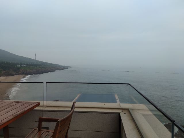 YoYo_1E3C3X5Q青岛涵碧楼是几年前亲戚推荐的,心心念念,这次回青度假和亲戚见面约在这里。 可能是疫情原因,感觉外观有些旧旧的痕迹。室外的休闲木桌椅也斑驳掉漆了。 涵碧楼的建筑设计真的是绝,在建筑中融合光影,以及嵌入了园艺。 大堂还是很气派的,酒窖里面红酒很多,温度也很冷。我们选择在大堂一角下午茶。 下午茶套餐也很丰富,至少欣赏海景吃了这些点心还是很满足了。 另外也推荐涵碧楼的温泉SPA,来了可以体验一下。 台湾乡林集团布局大陆的第一个文化创意度假酒店,是中国大陆第一家超五星级酒店,另一家在中国台北。该酒店位于青岛市黄岛区,背依凤凰山,三面环海。酒店由国际首屈一指的建筑大师Kerry Hill担纲设计,以大开大阖的现代极简风格,将繁复炫目的装潢一一摒弃,让住客充分感受与碧海蓝天融为一体的悠闲与放松。酒店将设置婚礼专用教堂,国际会议中心及顶级宴会厅,精品店,户外汤泉,SPA,法日意多国美食餐厅等高端度假配套,为青岛打造一座顶级的旅游度假酒店。青岛涵碧楼2014年10月12日开业。