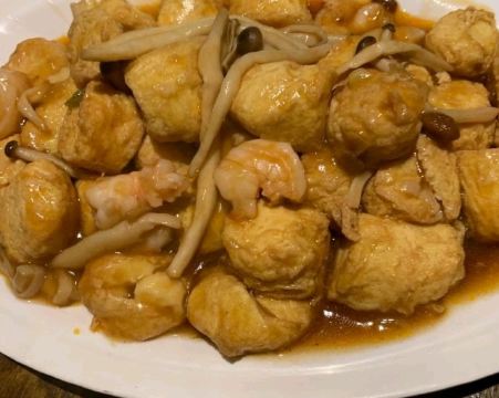 岛妹来啦青岛比较大的连锁家常菜馆,在青岛的几个区都可以吃到性价比是很高的,人均也就五六十块钱,分量都是很足的 渔家嫩豆腐可是下饭的一道好菜,里面用的是日本豆腐,搭配了各种的菌菇、虾仁、豌豆什么的,鲜得很他家的文蛤烧土鸡,绝对的大菜!一大份,还加了玉米饼子,土鸡的鸡肉不柴,反而很有劲道,而且是越嚼越香的那种,加上文蛤的调味,海鲜味完全融到鸡肉里,美味 他家的主食当然是粥了,八宝粥一定要尝一下,粥的品质很高的,特别的粘稠,而且一份有一大锅。四五个人都足够了 店里还上了印度甩饼,一共有八种口味,价格从22元到38元不等,喜欢果味的,特别是榴莲味的,虽然价格小贵,一份就要38元,但味道确实不错,刚甩出来的饼那叫一个香,榴莲味道也是浓郁得很呢