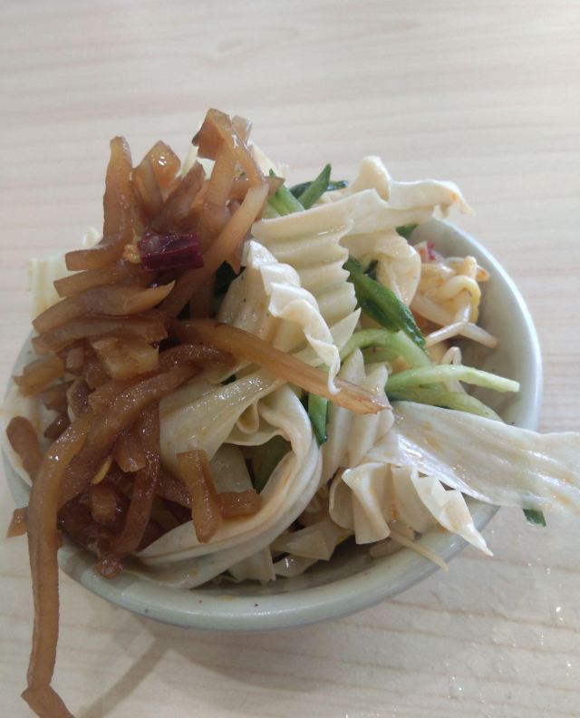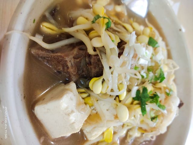 青岛各种名字的排骨米饭,是真多。食客多,能吃饱吃好,所以一般生意都不错。 某天和同事一起去这家店,老店了。好多出租车师傅都来吃饭,米饭免费加,八种小咸菜,很丰富了。 这次点儿的黄豆芽豆腐排骨,排骨是脊骨,我喜欢,有骨髓哦~香啊!