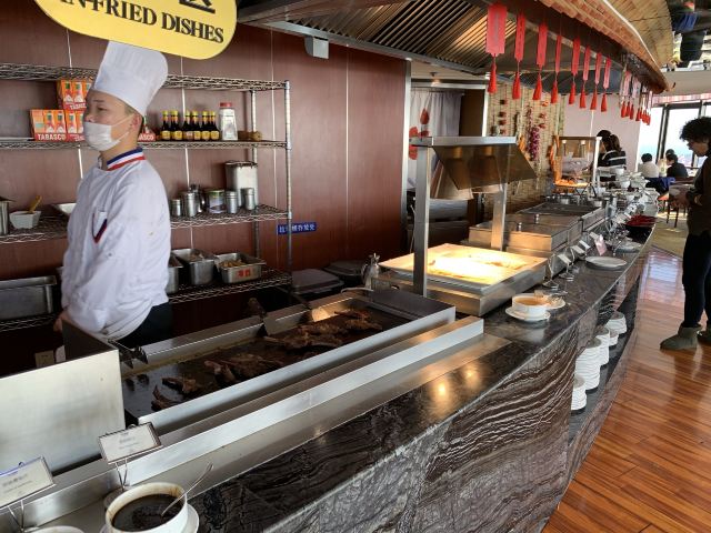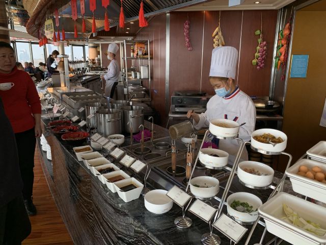 启航yyy这个酒店有名的就是这个旋转餐厅,环境特别好,可以360°欣赏无敌海景,吃着好吃的料理。
