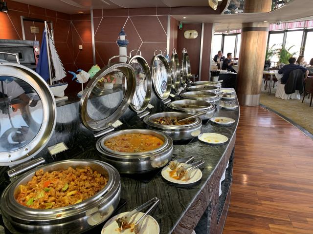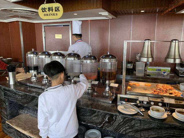 伊翎汇泉王朝算是个老牌酒店了,但是他家的自助一直没去尝试过,位置位于南海路上汇泉王朝的25楼,非常好找。 【环境】这个餐厅是个旋转餐厅,所以不管坐在哪里都可以看到大海的,基本一个半小时转一圈。 【菜品】菜品样数和种类非常的少可以说是近期吃过最差的自助了,没有三文鱼等鱼生类,牛排很难吃,大闸蟹是每人一只的,一点也不菲个头还很小。冰淇淋既不是哈根达斯,也不是什么有名的冰淇淋,需要自己挖,旁边那个泡挖冰淇淋勺子的桶已经脏到起泡了,基本上打出来的冰淇淋都化了。这个自助重点是也并不便宜,这个质量真是令人堪忧。 【服务】服务员很少,明显忙不过来,秩序也不是很好。 【总评】很不推荐的一家自助餐厅,要说看景色的话还是有更多很好的选择,这个自助真的是不好吃,性价比也不高。