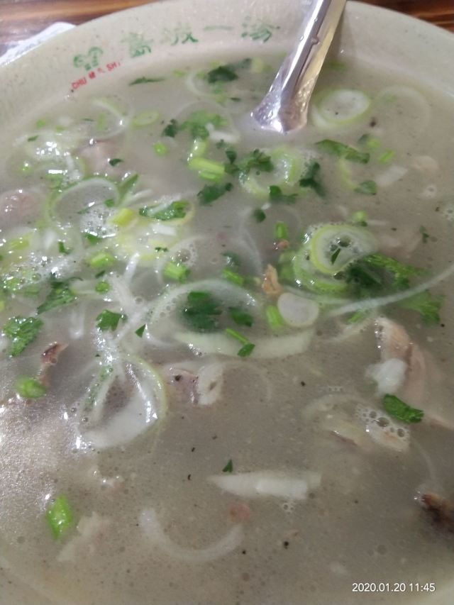 春节临近,也没什么好吃的了,大多回家过年闭店谢客,好像这个时候能开着的店吃饭人儿都不少呢~ 听同事说他家羊肉汤不错,约个来试试。中午店里人真很多呢~猪肉涨价,肉类都跟着贵起来,25元一份的全羊汤,也没有几片肉(ꐦ ´͈ ᗨ `͈ )必须加个火烧。 味道中规中矩吧,没有多出彩