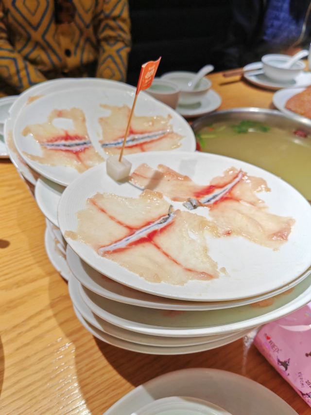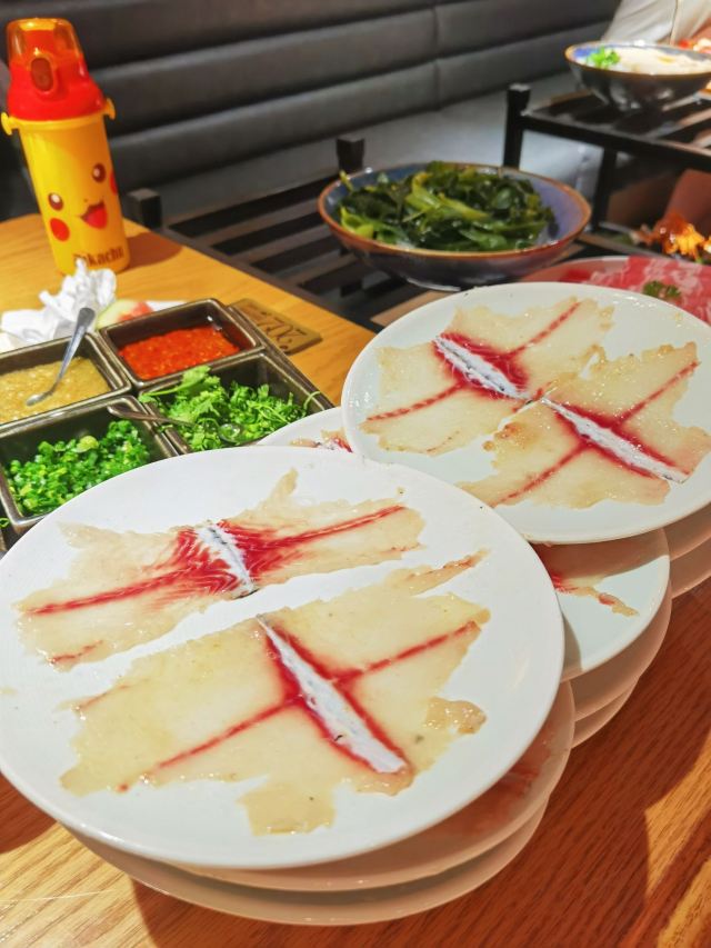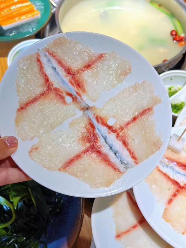 青青岛-又到天冷的季节了,周末带父母出来出来吃鱼火锅!店在宁夏路上,一进店,就感觉特别清爽干净店里也很明亮。桌椅摆放整齐,灯光也恰到好处,营造出了十分温馨又舒适的用餐氛围,在这里吃饭心情都格外美丽呢🥰。他们家的斑鱼那叫一个绝👍!鱼片切得薄如蝉翼,透过鱼片都能隐隐约约看到盘子的花纹呢。放到锅里稍微一涮,那鱼片就瞬间变色,变得白白嫩嫩的,入口即化的感觉真的太美妙了😋。一份三盘,一般一人最少5份起才过瘾,可以不点肉。鱼肉新鲜,而且完全没有腥味,只有鱼肉本身的鲜甜,每一口都仿佛在舌尖上跳舞💃。还有他们家的锅底呀,我选的是经典的鱼骨汤锅底🐟。汤底浓郁醇厚,是用新鲜的鱼骨长时间熬制而成的,满满的都是胶原蛋白。在涮鱼之前先盛上一碗汤尝尝,那鲜美的味道瞬间就能打开你的味蕾,感觉整个人都被这一口汤给治愈了🥣。服务也是杠杠的呀👍!店员们都特别热情,从进门的那一刻起就有专人引导我们就座,点菜的时候还会耐心地给我们介绍菜品特色和吃法。在就餐过程中,会及时地过来加汤、收拾桌面,真的让人感觉特别贴心周到呢。