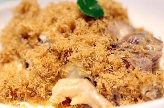 YI QING HUI怡情楼,青岛老牌中餐厅,23年了,图1、2的姜蓉鸡在央视卖了180万给眉州东坡,确实名不虚传,做法:生姜竖拍成丝,挤汁加盐腌鸡,腌制一刻风干,风干一刻即蒸,原只清蒸一刻,斩件摆回原只,姜丝加盐炸蓉,姜蓉铺鸡上桌。再吃个1906的哈尔滨榴莲味马迭尔雪糕,赞!地址:青岛市徐州楼1号假日酒店二楼。